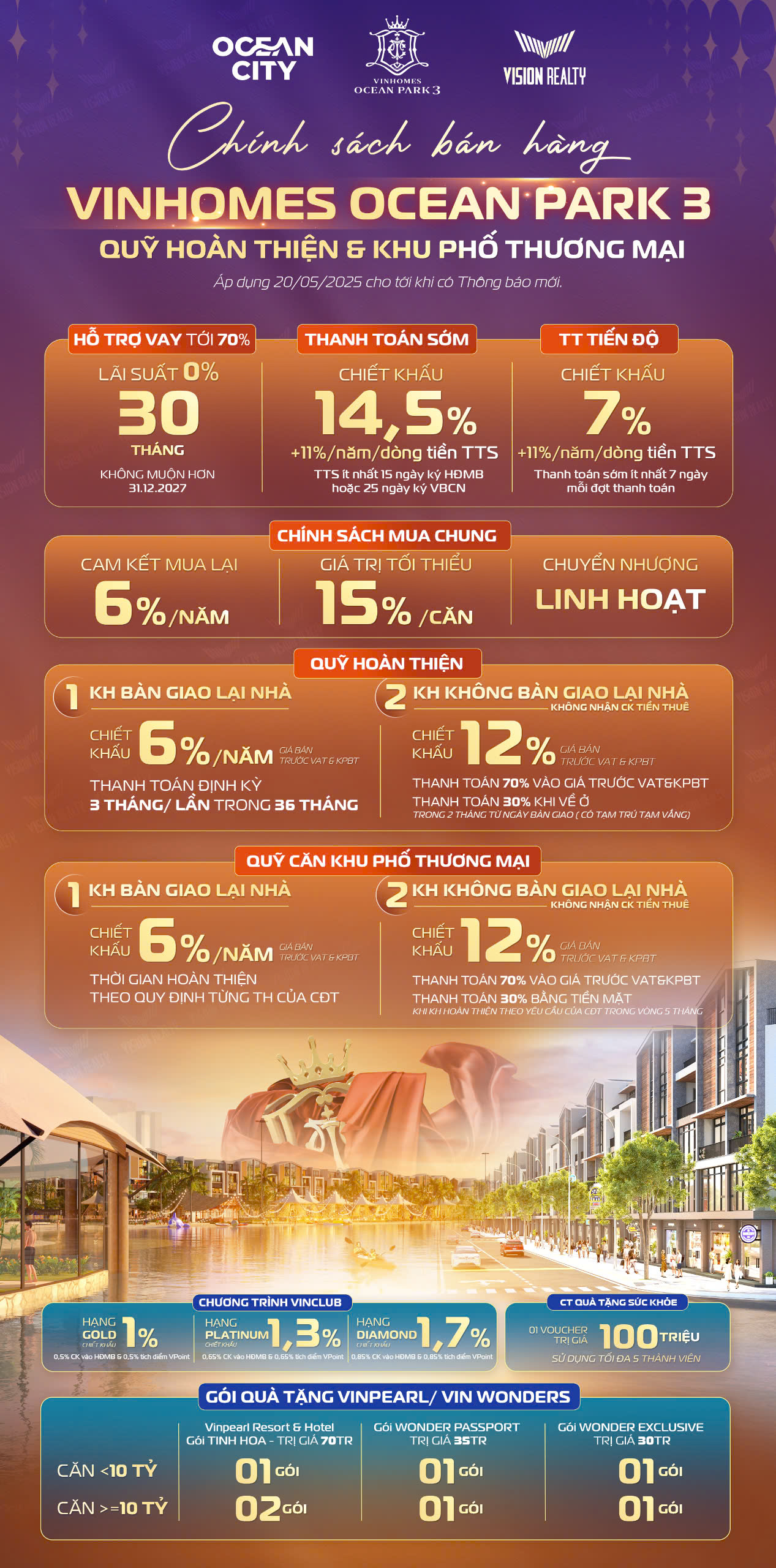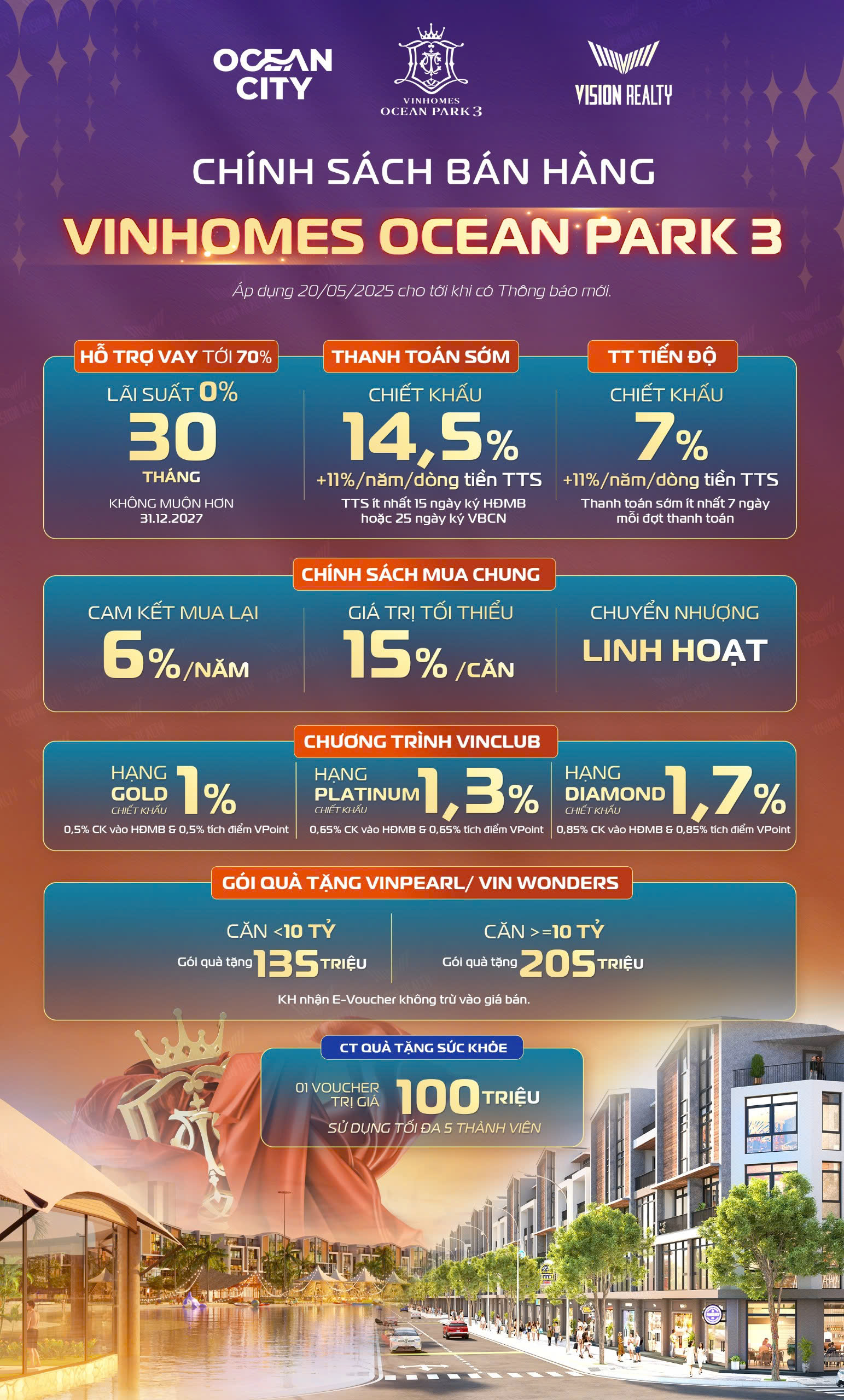 SIÊU CHÍNH SÁCH BẢNG GIÁ VINHOME OCEAN PARK 2&3 THÁNG 06/2025