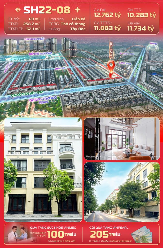 - Shophouse: DT 55 – 300 m2, giá bán 9 – 40 tỷ